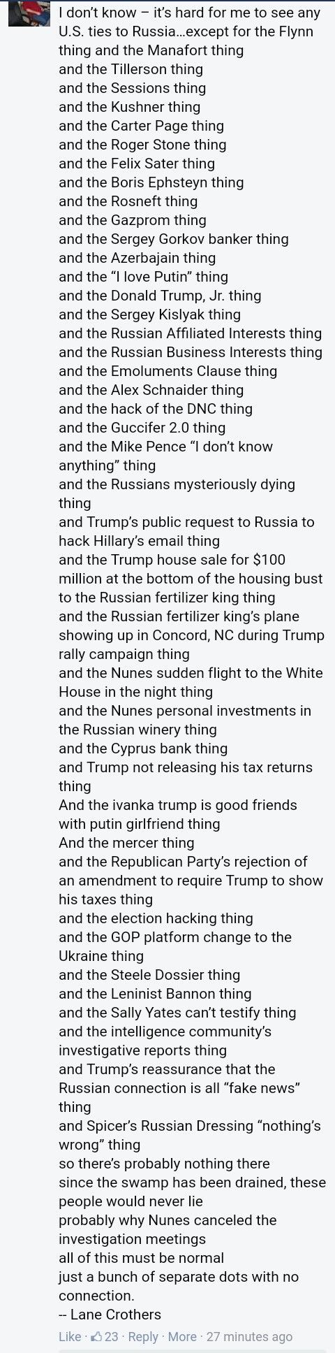 Oh just refer back to Donny Jr. Emails that's a good start.