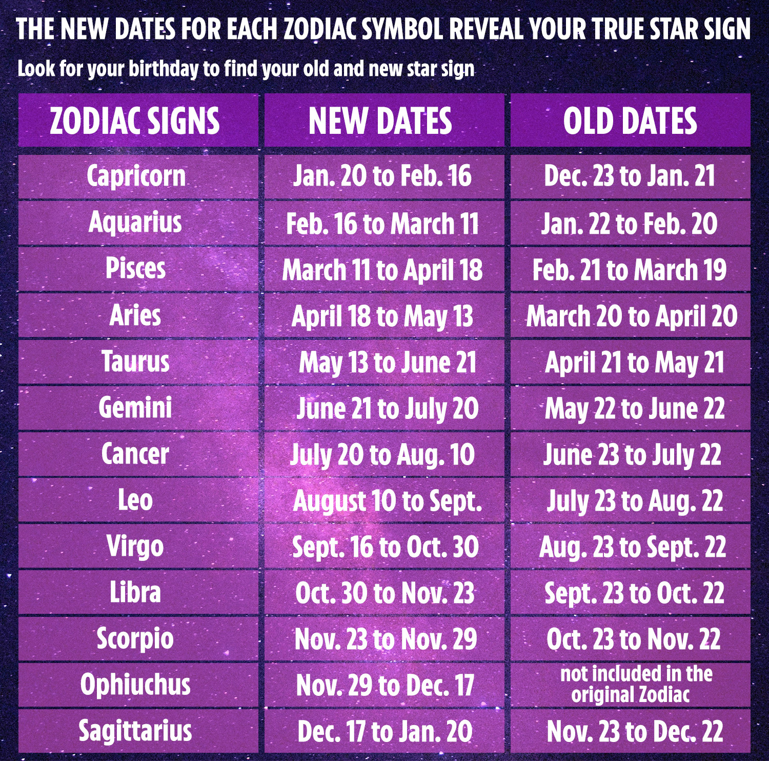 Just looked at the horoscopes and the old dates are still in effect. Plus the chart above has the days WRONG for Sagittarius, runs to Dec. 21, and Capricorn, starts on Dec. 22nd - my birthday.