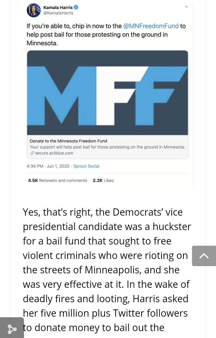 Putting the Antifa and BLM redirect aside for a minute... is it not concerning that Harris and Biden where directly involved in raising money to post bail for those arrested during Minneapolis rioting and looting.