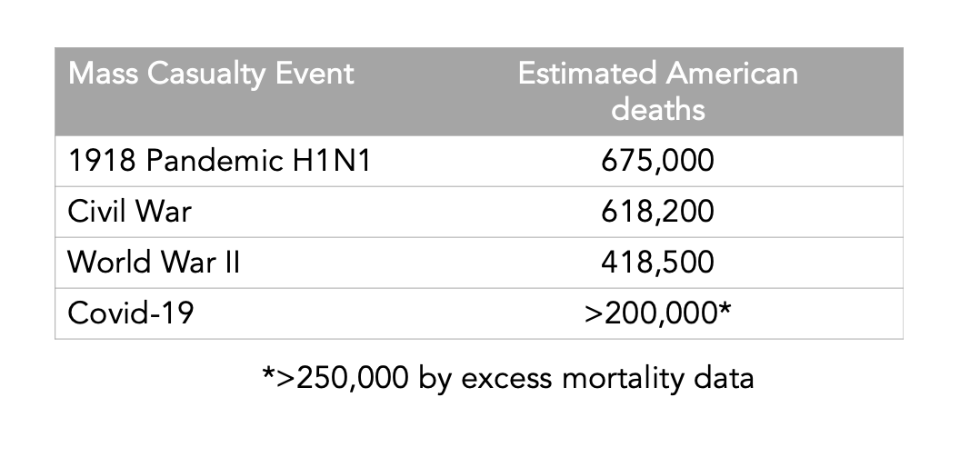^COVID is the 4th worst mass casualty event in US history. And that's after we saved many lives with these lockdowns. And it's not half over. It's no hoax. I'm not trying to instill fear in you. I'm just trying to state the facts as best as I can.