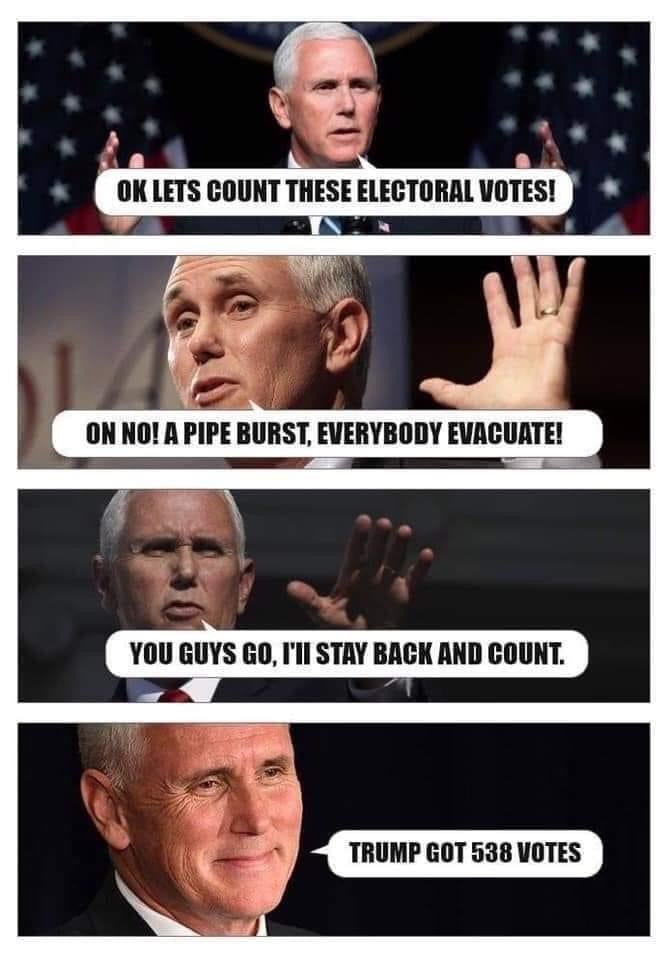 Don't forget when stupid Maxine waters objected and then the black caucus walked out cuz they were butthurt. Or just 4 years ago when dems again objected. Pence will deliver a 2nd Trump term and theres not a damn thing the left can do about it. Next time do not subvert state legislatures and don't dump 200k ballots for the dem at 2am in swing states