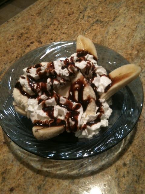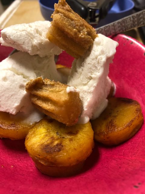 Fried plantains with vanilla ice cream wash them down with a cup of mocha.