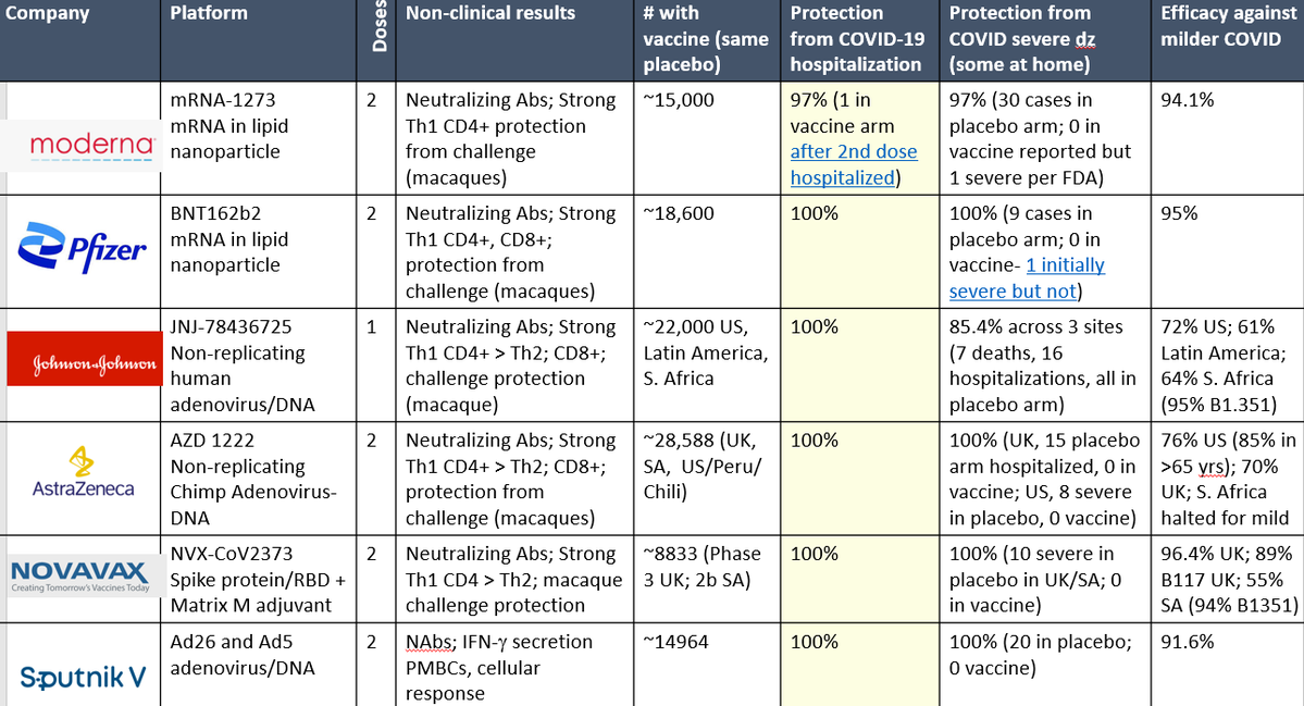 Here's more information on the vaccines available, including how effective they've been in studies against severe disease, hospitalization, and milder disease. The list comes from a COVID researcher at UCSF.