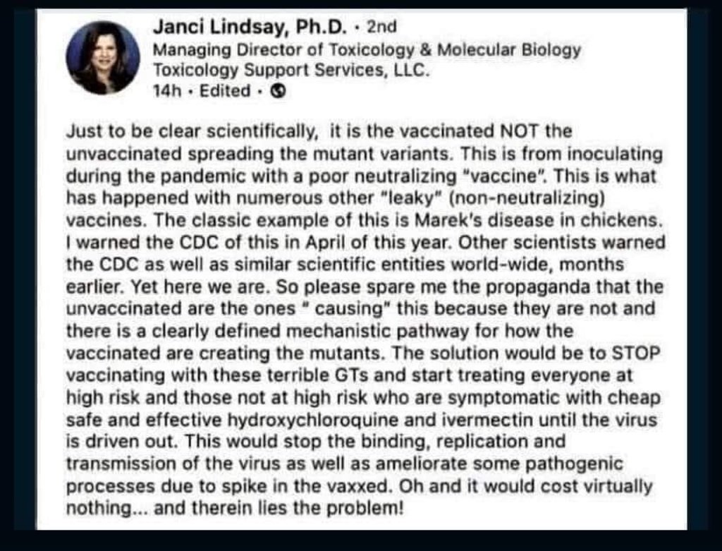 " Whats the likelihood that a mutant strain is created by one or all of these "break through" infections from the vaccinated... "