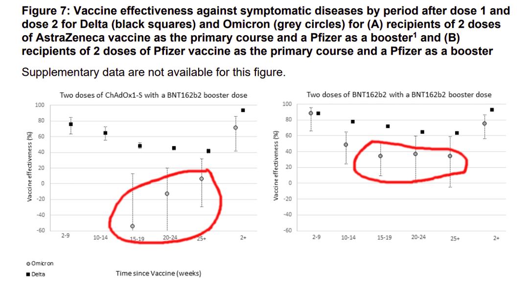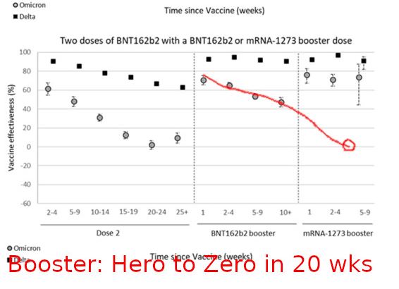 The good news, that the OP didn't present, because he's an unscientific anti-vaxxer and won't give you a fair assessment -- both the good and bad -- is that these vaccines are still excellent at preventing hospitalizations and deaths. Efficacy against severe disease is in the 90% with the booster.