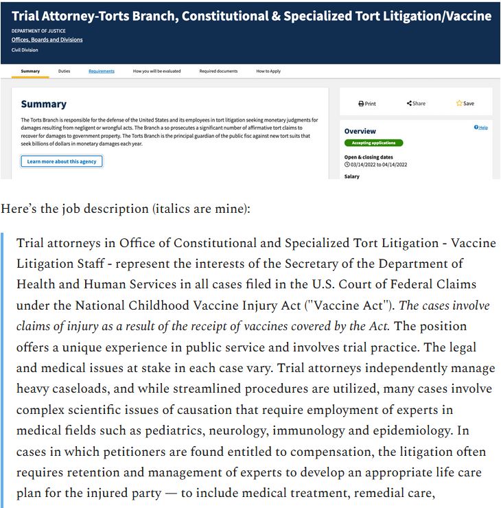 The DOJ Is Hiring Tort Lawyers To Defend HHS From Vaccine Injury Cases