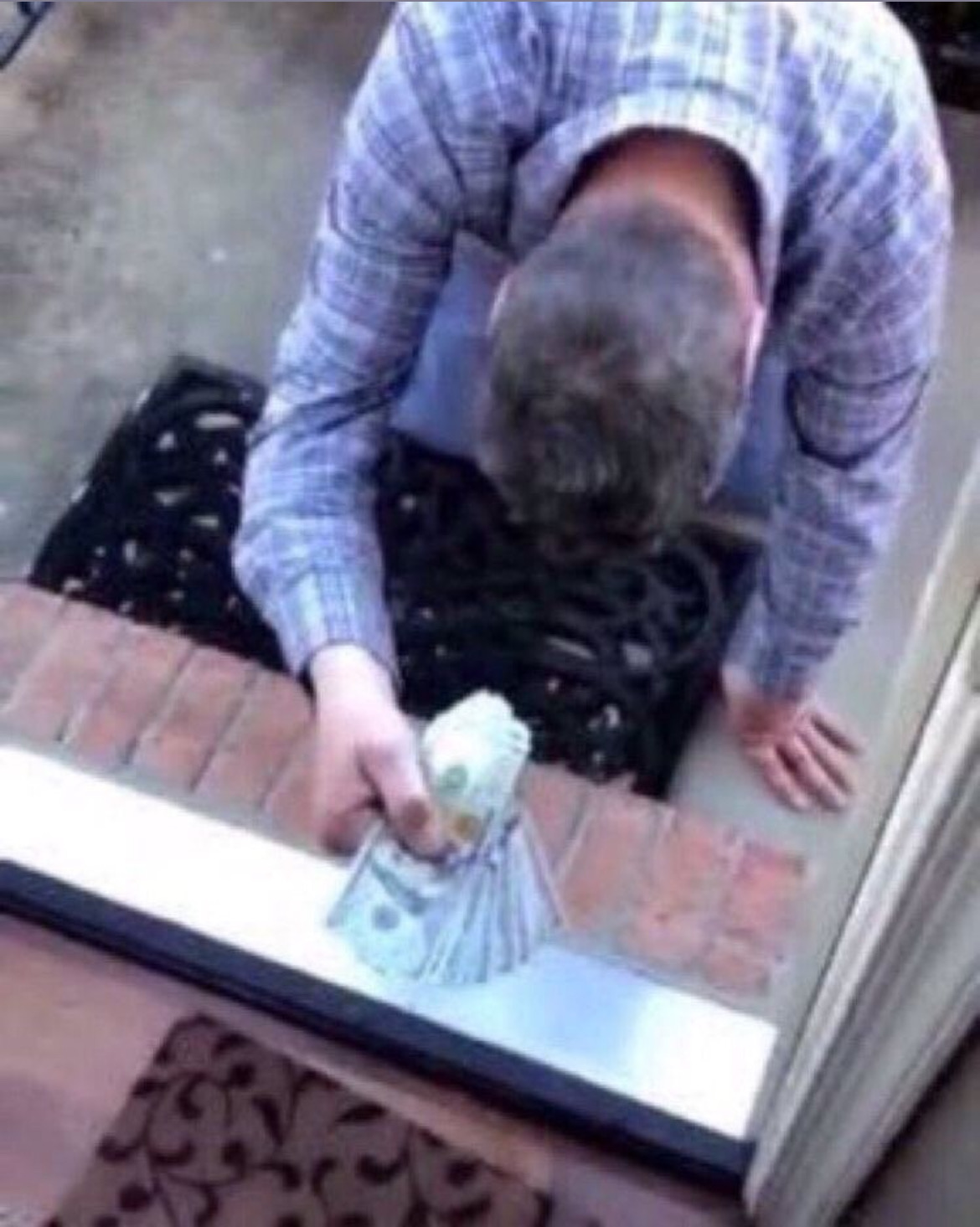 I usually just knock, end up cumming on the door from the anticipation, drop an envelope, and leave.