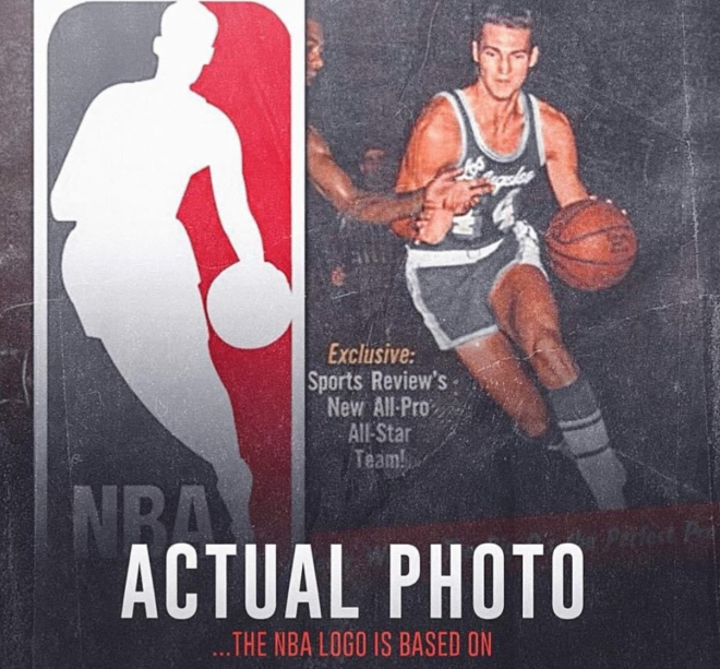 Read in the WSJ yesterday the player in the NBA logo is the outline of Jerry West while he was playing the game. The artist chose the photo because he like those graceful pose that was captured by the photograph. It inspired a new standard in sports league logos. West only acknowledged it was him only a handful of times publicly. I heard he threw some pretty wild parties back in the day.