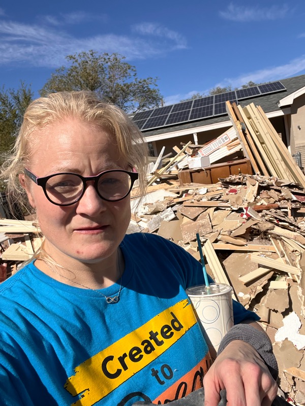 Examples of some of the damage and me st the house I'm volunteering at today: