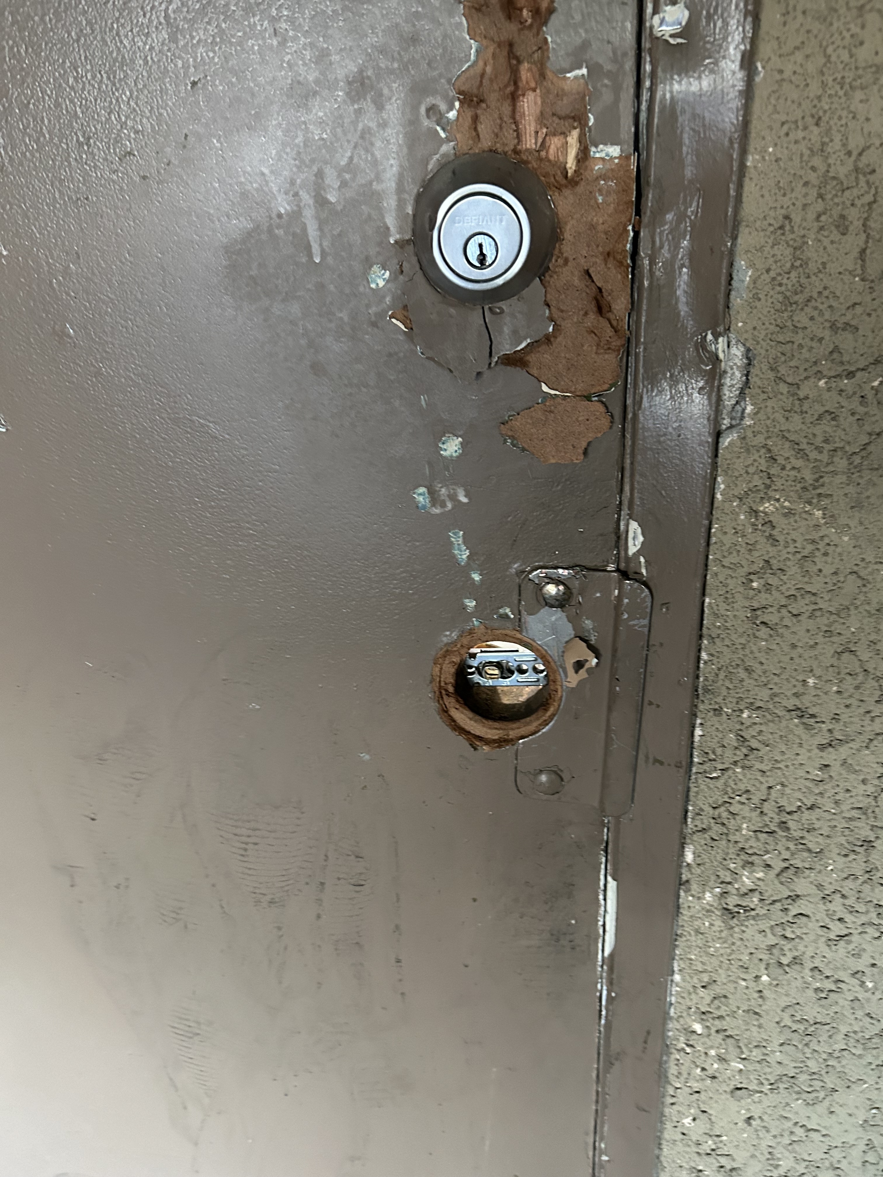Look at the front door they was working on it hard smh I know someone saw them but no one cared because it’s not them