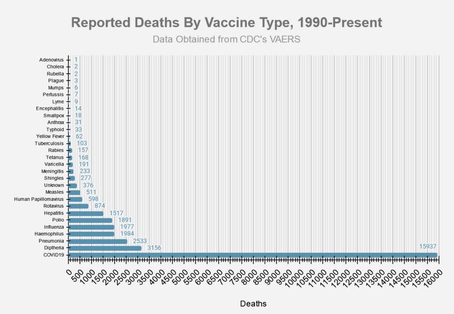PS The attached chart is from CDC's own VAERS reporting system for Doctors. Which not all Dr's input data. The chart is from mid 2021 when the jabs were in full swing.